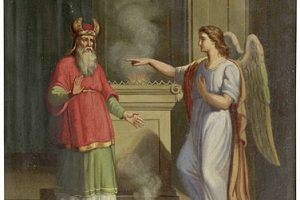 5 In the days of Herod, king of Judea, there was a priest named Zechari’ah, of the division of Abi’jah; and he had a wife of the daughters of Aaron, and her name was Elizabeth. 6 And they were both righteous before God, walking in all the commandments and ordinances of the Lord blameless. 7 But they had no child, because Elizabeth was barren, and both were advanced in years. 8 Now while he was serving as priest before God when his division was on duty, 9 according to the custom of the priesthood, it fell to him by lot to enter the temple of the Lord and burn incense. 10 And the whole multitude of the people were praying outside at the hour of incense. 11 And there appeared to him an angel of the Lord standing on the right side of the altar of incense. 12 And Zechari’ah was troubled when he saw him, and fear fell upon him. 13 But the angel said to him, “Do not be afraid, Zechari’ah, for your prayer is heard, and your wife Elizabeth will bear you a son, and you shall call his name John. 14 And you will have joy and gladness, and many will rejoice at his birth; 15 for he will be great before the Lord, and he shall drink no wine nor strong drink, and he will be filled with the Holy Spirit, even from his mother’s womb. 16 And he will turn many of the sons of Israel to the Lord their God, 17 and he will go before him in the spirit and power of Eli’jah, to turn the hearts of the fathers to the children, and the disobedient to the wisdom of the just, to make ready for the Lord a people prepared.” 18 And Zechari’ah said to the angel, “How shall I know this? For I am an old man, and my wife is advanced in years.” 19 And the angel answered him, “I am Gabriel, who stand in the presence of God; and I was sent to speak to you, and to bring you this good news. 20 And behold, you will be silent and unable to speak until the day that these things come to pass, because you did not believe my words, which will be fulfilled in their time.” 21 And the people were waiting for Zechari’ah, and they wondered at his delay in the temple. 22 And when he came out, he could not speak to them, and they perceived that he had seen a vision in the temple; and he made signs to them and remained dumb. 23 And when his time of service was ended, he went to his home. 24 After these days his wife Elizabeth conceived, and for five months she hid herself, saying, 25 “Thus the Lord has done to me in the days when he looked on me, to take away my reproach among men.”