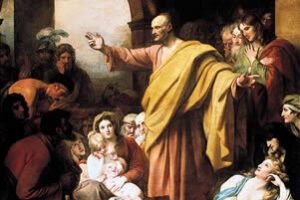 14 But Peter, standing with the eleven, lifted up his voice and addressed them, “Men of Judea and all who dwell in Jerusalem, let this be known to you, and give ear to my words. 22 Men of Israel, hear these words: Jesus of Nazareth, a man attested to you by God with mighty works and wonders and signs which God did through him in your midst, as you yourselves know — 23 this Jesus, delivered up according to the definite plan and foreknowledge of God, you crucified and killed by the hands of lawless men. 24 But God raised him up, having loosed the pangs of death, because it was not possible for him to be held by it. 25 For David says concerning him, `I saw the Lord always before me, for he is at my right hand that I may not be shaken; 26 therefore my heart was glad, and my tongue rejoiced; moreover my flesh will dwell in hope. 27 For thou wilt not abandon my soul to Hades, nor let thy Holy One see corruption. 28 Thou hast made known to me the ways of life; thou wilt make me full of gladness with thy presence.’ 29 Brethren, I may say to you confidently of the patriarch David that he both died and was buried, and his tomb is with us to this day. 30 Being therefore a prophet, and knowing that God had sworn with an oath to him that he would set one of his descendants upon his throne, 31 he foresaw and spoke of the resurrection of the Christ, that he was not abandoned to Hades, nor did his flesh see corruption. 32 This Jesus God raised up, and of that we all are witnesses. 33 Being therefore exalted at the right hand of God, and having received from the Father the promise of the Holy Spirit, he has poured out this which you see and hear.