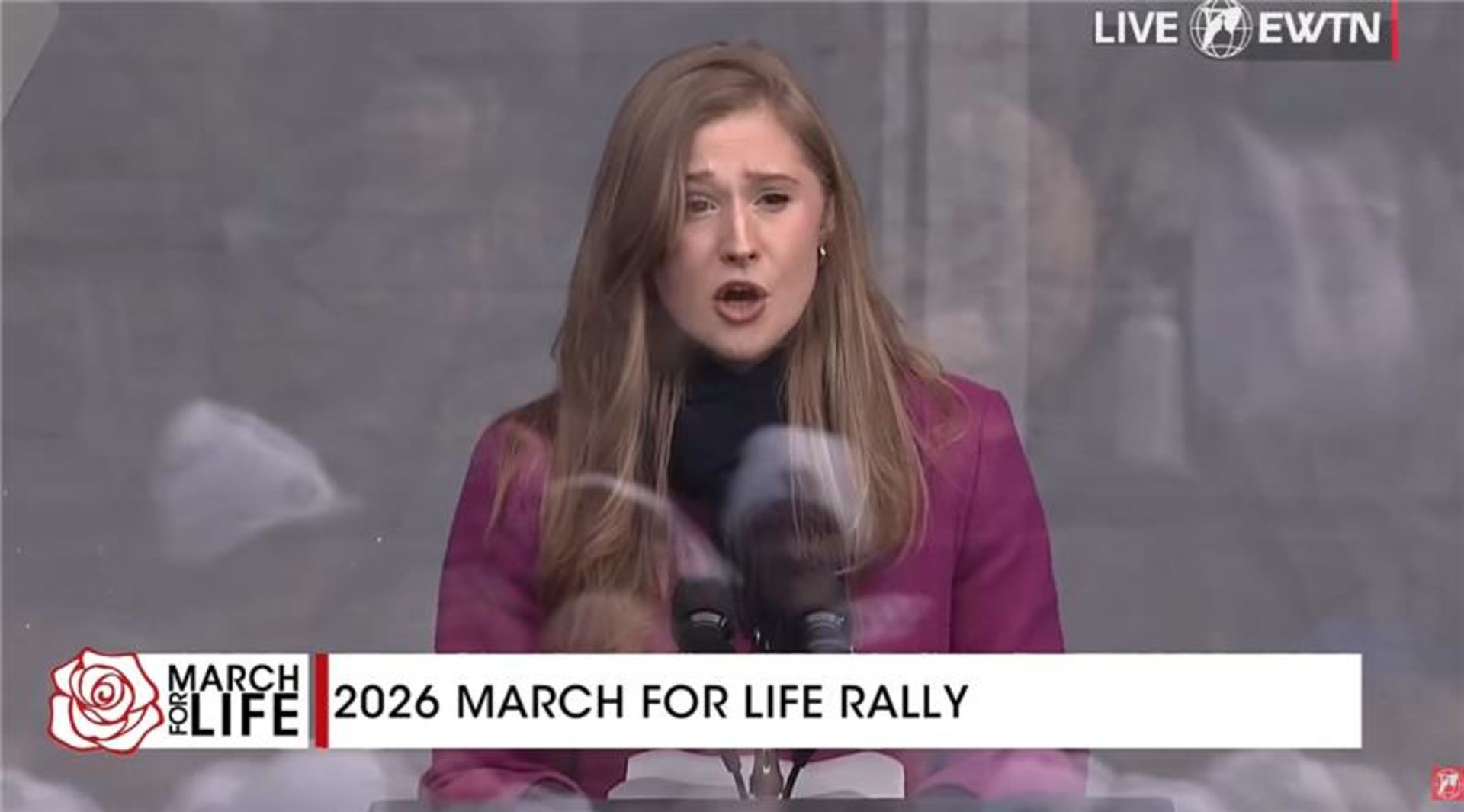 Jennie Bradley Lichter takes to the stage to read Pope Leo XIV’s message to those attending the March for Life.